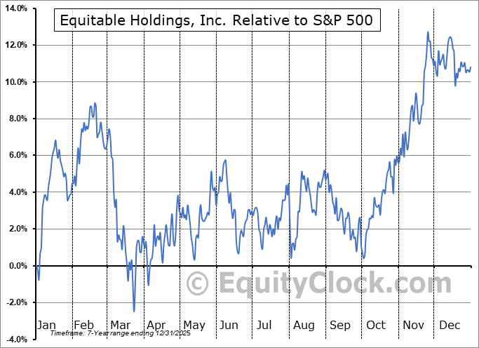 Analysis of the Equitable Holdings, Inc. (NYSE:EQH) seasonal charts above shows that a Buy Date of September 26 and a Sell Date of February 20 has resulted in a geometric average return of 12.47% above the benchmark rate of the S&P 500 Total Return Index over the past 7 years. This seasonal timeframe has shown positive results compared to the benchmark in 6 of those periods. This is a very good rate of success and the return strongly outperforms the relative buy-and-hold performance of the stock over the past 7 years by an average of 10.65% per year.