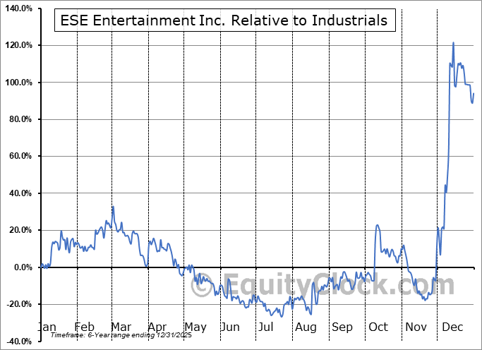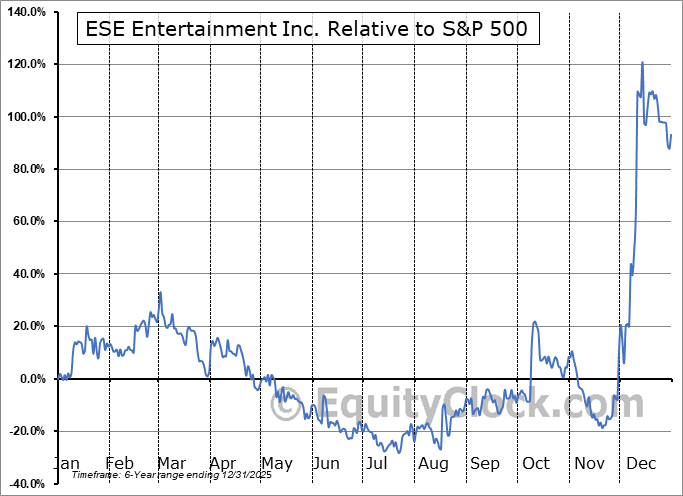 Analysis of the ESE Entertainment Inc. (TSXV:ESE.V) seasonal charts above shows that a Buy Date of July 15 and a Sell Date of October 3 has resulted in a geometric average return of 18.93% above the benchmark rate of the S&P 500 Total Return Index over the past 5 years. This seasonal timeframe has shown positive results compared to the benchmark in 5 of those periods. This is an excellent rate of success and the return strongly outperforms the relative buy-and-hold performance of the stock over the past 5 years by an average of 46.16% per year.