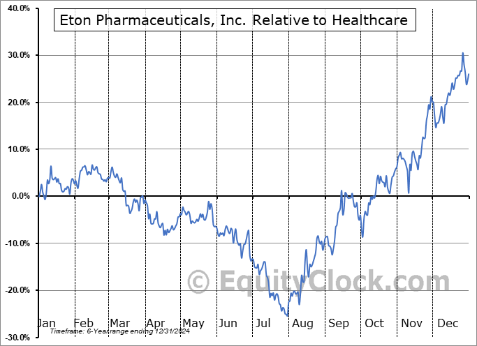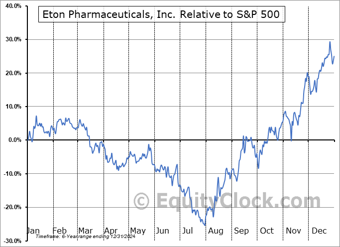 Analysis of the Eton Pharmaceuticals, Inc. (NASD:ETON) seasonal charts above shows that a Buy Date of November 30 and a Sell Date of February 18 has resulted in a geometric average return of 9.23% above the benchmark rate of the S&P 500 Total Return Index over the past 6 years. This seasonal timeframe has shown positive results compared to the benchmark in 6 of those periods. This is an excellent rate of success and the return strongly outperforms the relative buy-and-hold performance of the stock over the past 6 years by an average of 12.06% per year.
