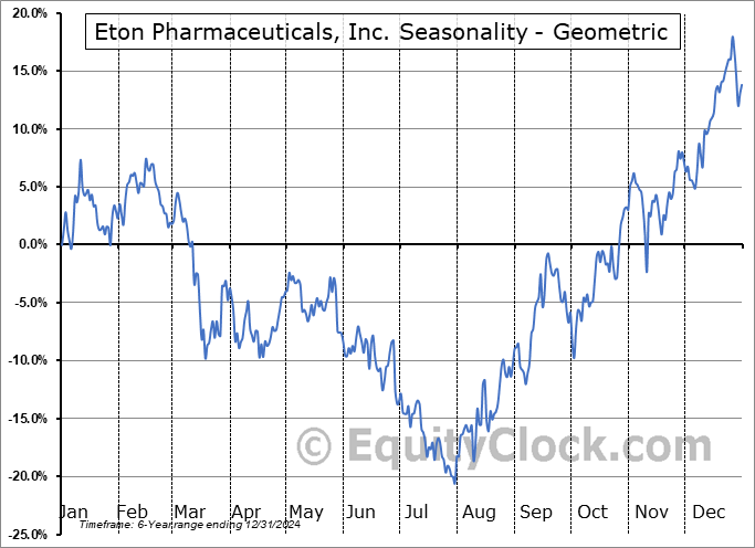A word of caution: Only 6 years of data is available for shares of ETON, perhaps insufficient to create a seasonal profile that accurately gauges the seasonal tendencies influencing the investment. Ideally, while 20 years is preferred, at least 10 years of data is required to perform a seasonal analysis that is considered to be reliable for future seasonal periods.