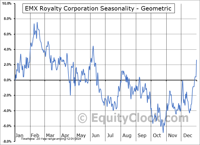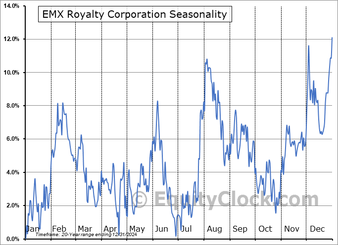 EMX Royalty Corporation (TSXV:EMX.V) Seasonal Chart