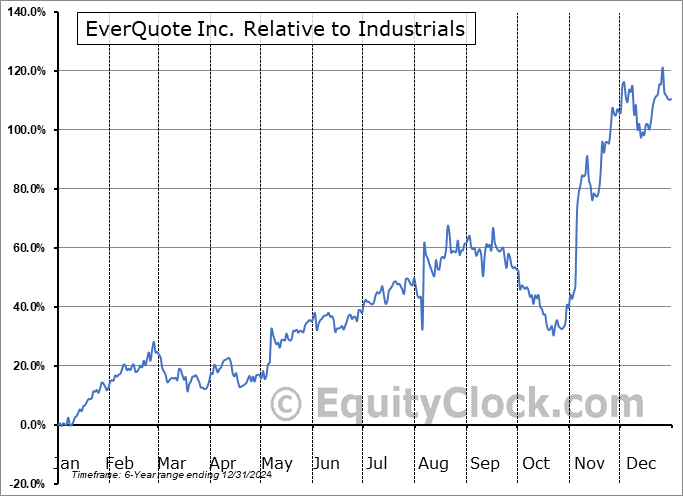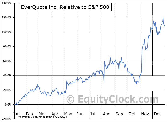 Analysis of the EverQuote Inc. (NASD:EVER) seasonal charts above shows that a Buy Date of November 19 and a Sell Date of February 24 has resulted in a geometric average return of 32.31% above the benchmark rate of the S&P 500 Total Return Index over the past 6 years. This seasonal timeframe has shown positive results compared to the benchmark in 6 of those periods. This is an excellent rate of success and the return strongly outperforms the relative buy-and-hold performance of the stock over the past 6 years by an average of 22.87% per year.