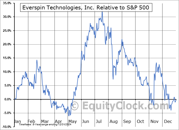 Analysis of the Everspin Technologies, Inc. (NASD:MRAM) seasonal charts above shows that a Buy Date of May 6 and a Sell Date of August 31 has resulted in a geometric average return of 18.73% above the benchmark rate of the S&P 500 Total Return Index over the past 8 years. This seasonal timeframe has shown positive results compared to the benchmark in 6 of those periods. This is a good rate of success and the return strongly outperforms the relative buy-and-hold performance of the stock over the past 8 years by an average of 33.37% per year.