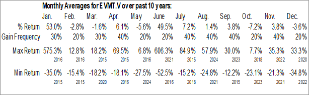 To download EVMT.V seasonal chart data, please log in or Subscribe.