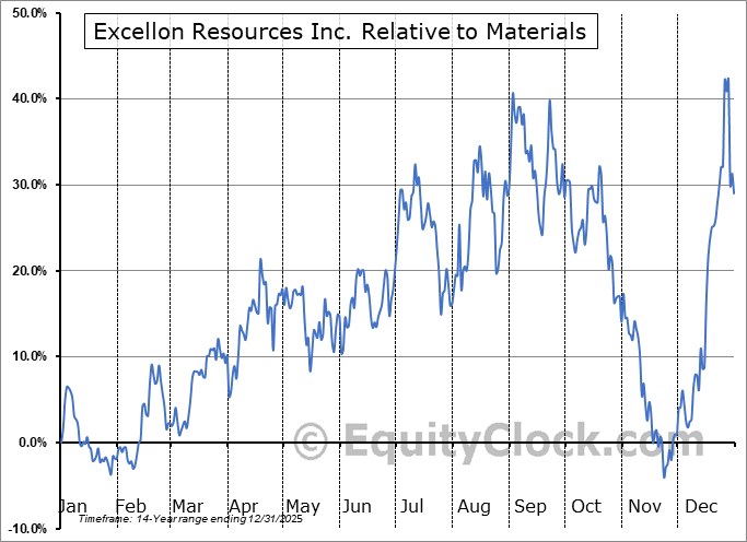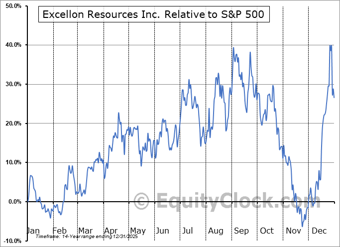 Analysis of the Excellon Resources Inc. (OTCMKT:EXNRF) seasonal charts above shows that a Buy Date of December 7 and a Sell Date of March 13 has resulted in a geometric average return of 10.17% above the benchmark rate of the S&P 500 Total Return Index over the past 14 years. This seasonal timeframe has shown positive results compared to the benchmark in 11 of those periods. This is a good rate of success and the return strongly outperforms the relative buy-and-hold performance of the stock over the past 14 years by an average of 42.76% per year.