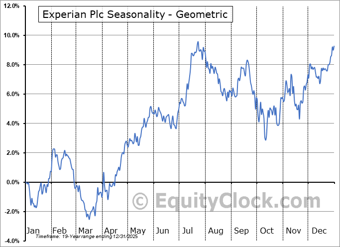 Analysis of the Experian Plc (OTCMKT:EXPGY) seasonal charts above shows that a Buy Date of April 12 and a Sell Date of July 23 has resulted in a geometric average return of 4.43% above the benchmark rate of the S&P 500 Total Return Index over the past 19 years. This seasonal timeframe has shown positive results compared to the benchmark in 16 of those periods. This is a very good rate of success and the return strongly outperforms the relative buy-and-hold performance of the stock over the past 19 years by an average of 5.59% per year.