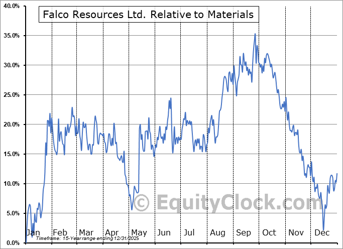 Analysis of the Falco Resources Ltd. (TSXV:FPC.V) seasonal charts above shows that a Buy Date of December 15 and a Sell Date of March 4 has resulted in a geometric average return of 26.77% above the benchmark rate of the S&P 500 Total Return Index over the past 14 years. This seasonal timeframe has shown positive results compared to the benchmark in 12 of those periods. This is a very good rate of success and the return strongly outperforms the relative buy-and-hold performance of the stock over the past 14 years by an average of 41.33% per year.