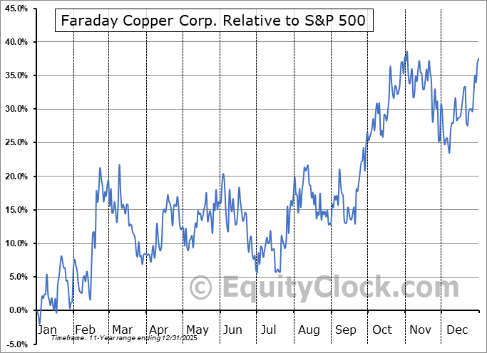 Analysis of the Faraday Copper Corp. (TSE:FDY.TO) seasonal charts above shows that a Buy Date of December 10 and a Sell Date of April 18 has resulted in a geometric average return of 21.14% above the benchmark rate of the S&P 500 Total Return Index over the past 10 years. This seasonal timeframe has shown positive results compared to the benchmark in 8 of those periods. This is a very good rate of success and the return strongly outperforms the relative buy-and-hold performance of the stock over the past 10 years by an average of 22.1% per year.