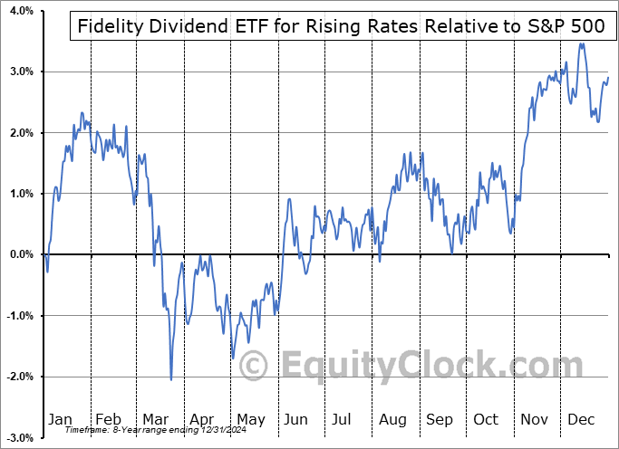 Analysis of the Fidelity Dividend ETF for Rising Rates (AMEX:FDRR) seasonal charts above shows that a Buy Date of October 6 and a Sell Date of January 7 has resulted in a geometric average return of 2% above the benchmark rate of the S&P 500 Total Return Index over the past 7 years. This seasonal timeframe has shown positive results compared to the benchmark in 7 of those periods. This is an excellent rate of success and the return strongly outperforms the relative buy-and-hold performance of the stock over the past 7 years by an average of 4.79% per year.