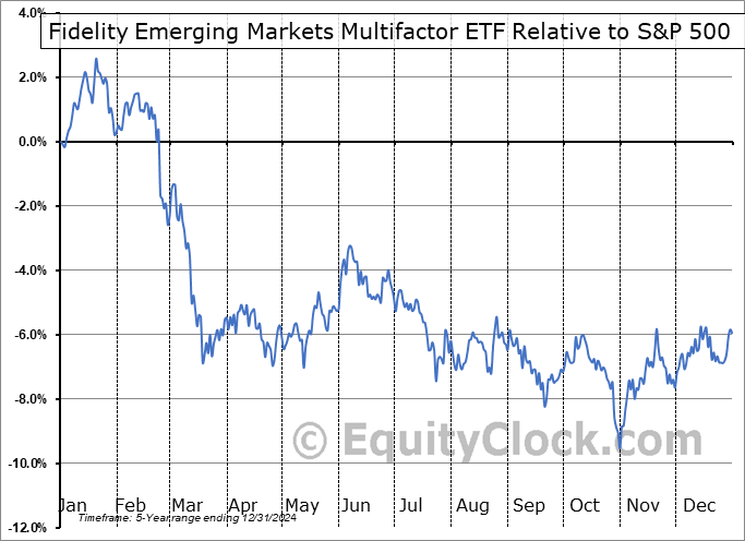 Analysis of the Fidelity Emerging Markets Multifactor ETF (AMEX:FDEM) seasonal charts above shows that a Buy Date of August 21 and a Sell Date of January 13 has resulted in a geometric average return of 3.17% above the benchmark rate of the S&P 500 Total Return Index over the past 5 years. This seasonal timeframe has shown positive results compared to the benchmark in 4 of those periods. This is a very good rate of success and the return strongly outperforms the relative buy-and-hold performance of the stock over the past 5 years by an average of 13.1% per year.