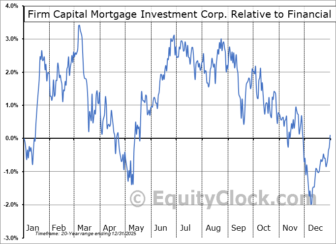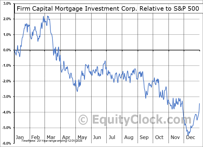 Analysis of the Firm Capital Mortgage Investment Corp. (TSE:FC.TO) seasonal charts above shows that a Buy Date of December 13 and a Sell Date of March 10 has resulted in a geometric average return of 3.85% above the benchmark rate of the S&P 500 Total Return Index over the past 20 years. This seasonal timeframe has shown positive results compared to the benchmark in 15 of those periods. This is a good rate of success and the return strongly outperforms the relative buy-and-hold performance of the stock over the past 20 years by an average of 8.01% per year.