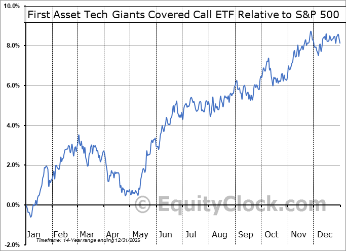 Analysis of the First Asset Tech Giants Covered Call ETF (CAD Hedged) (TSE:TXF.TO) seasonal charts above shows that a Buy Date of December 1 and a Sell Date of February 21 has resulted in a geometric average return of 0.89% above the benchmark rate of the S&P 500 Total Return Index over the past 13 years. This seasonal timeframe has shown positive results compared to the benchmark in 11 of those periods. This is a very good rate of success, but the return underperforms the relative buy-and-hold performance of the stock over the past 13 years by an average of 0.04% per year.