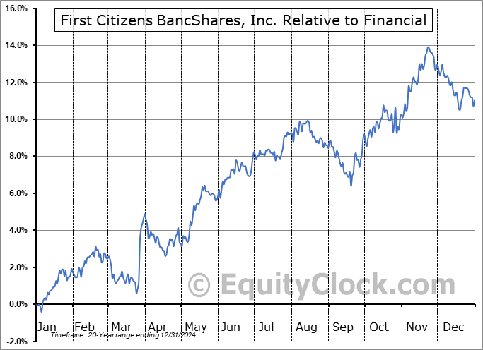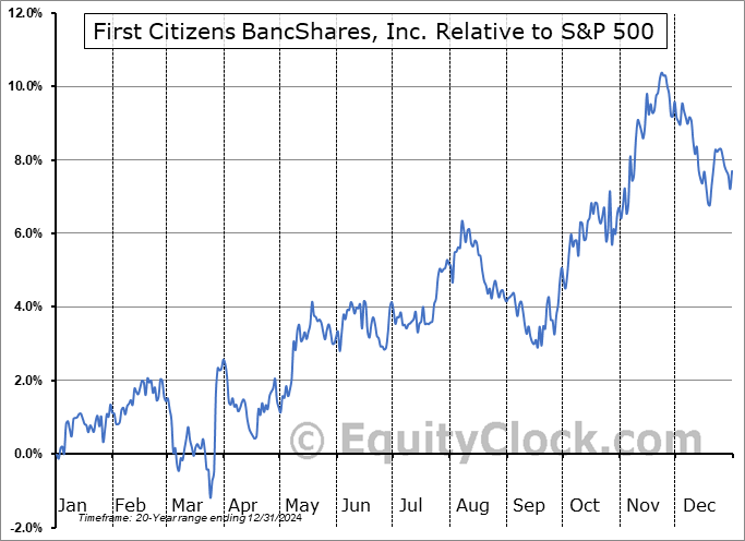 Analysis of the First Citizens BancShares, Inc. (NASD:FCNCA) seasonal charts above shows that a Buy Date of July 21 and a Sell Date of November 8 has resulted in a geometric average return of 3.36% above the benchmark rate of the S&P 500 Total Return Index over the past 20 years. This seasonal timeframe has shown positive results compared to the benchmark in 16 of those periods. This is a very good rate of success, but the return underperforms the relative buy-and-hold performance of the stock over the past 20 years by an average of 0.95% per year.
