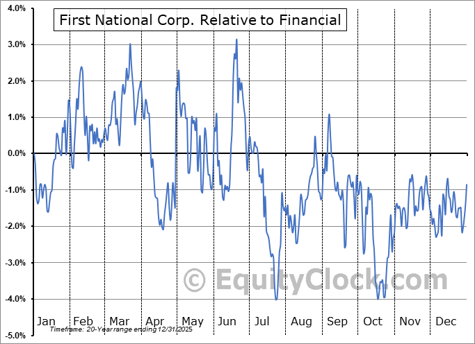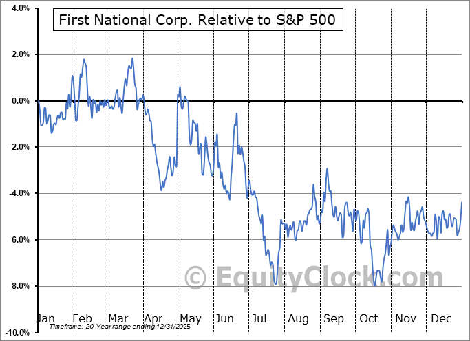 Analysis of the First National Corp. (NASD:FXNC) seasonal charts above shows that a Buy Date of December 17 and a Sell Date of March 16 has resulted in a geometric average return of 1.26% above the benchmark rate of the S&P 500 Total Return Index over the past 20 years. This seasonal timeframe has shown positive results compared to the benchmark in 15 of those periods. This is a good rate of success and the return strongly outperforms the relative buy-and-hold performance of the stock over the past 20 years by an average of 11.48% per year.