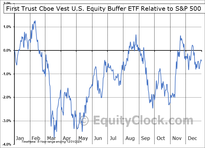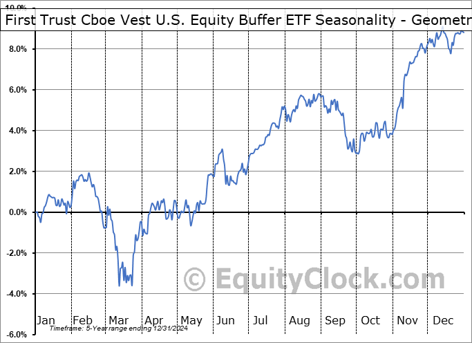 Analysis of the First Trust Cboe Vest U.S. Equity Buffer ETF (AMEX:FNOV) seasonal charts above shows that a Buy Date of February 15 and a Sell Date of May 12 has resulted in a geometric average return of 1.65% above the benchmark rate of the S&P 500 Total Return Index over the past 5 years. This seasonal timeframe has shown positive results compared to the benchmark in 3 of those periods. This is a fair rate of success and the return strongly outperforms the relative buy-and-hold performance of the stock over the past 5 years by an average of 6.58% per year.