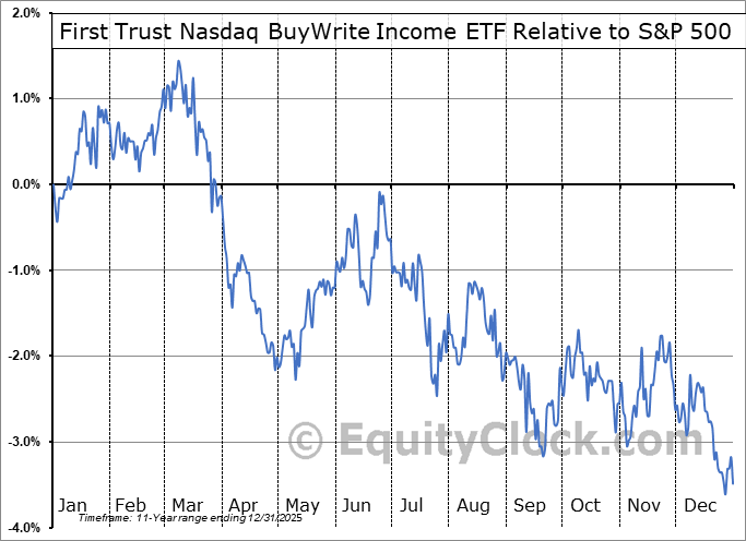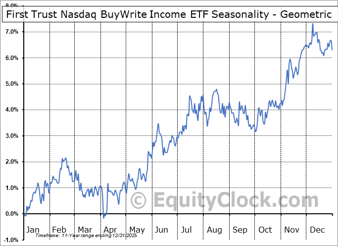 Analysis of the First Trust Nasdaq BuyWrite Income ETF (NASD:FTQI) seasonal charts above shows that a Buy Date of December 4 and a Sell Date of March 16 has resulted in a geometric average return of 0.98% above the benchmark rate of the S&P 500 Total Return Index over the past 11 years. This seasonal timeframe has shown positive results compared to the benchmark in 6 of those periods. This is a poor rate of success and the return strongly outperforms the relative buy-and-hold performance of the stock over the past 11 years by an average of 7.2% per year.