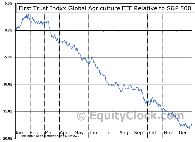 Analysis of the First Trust Indxx Global Agriculture ETF (NASD:FTAG) seasonal charts above shows that a Buy Date of December 14 and a Sell Date of March 4 has resulted in a geometric average return of 0.08% above the benchmark rate of the S&P 500 Total Return Index over the past 13 years. This seasonal timeframe has shown positive results compared to the benchmark in 6 of those periods. This is a poor rate of success and the return strongly outperforms the relative buy-and-hold performance of the stock over the past 13 years by an average of 22.21% per year.