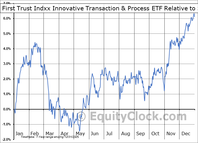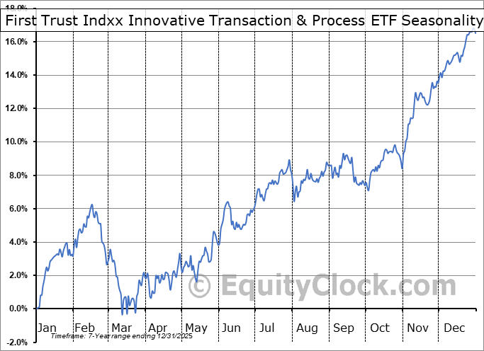 Analysis of the First Trust Indxx Innovative Transaction & Process ETF (NASD:LEGR) seasonal charts above shows that a Buy Date of November 22 and a Sell Date of February 23 has resulted in a geometric average return of 3.04% above the benchmark rate of the S&P 500 Total Return Index over the past 7 years. This seasonal timeframe has shown positive results compared to the benchmark in 6 of those periods. This is a very good rate of success and the return strongly outperforms the relative buy-and-hold performance of the stock over the past 7 years by an average of 4.77% per year.
