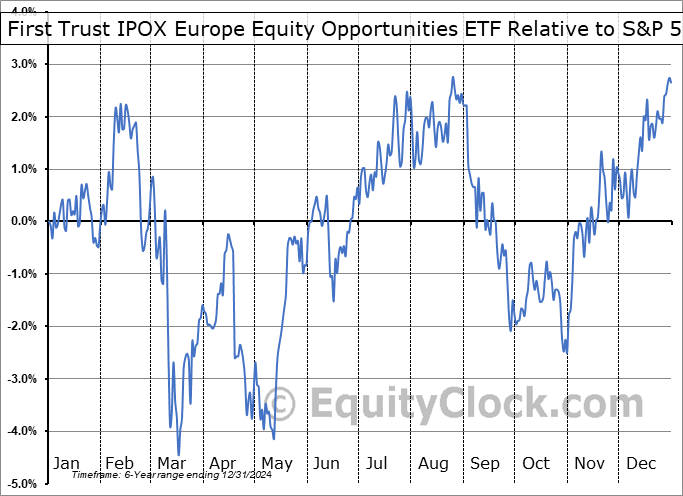 Analysis of the First Trust IPOX Europe Equity Opportunities ETF (NASD:FPXE) seasonal charts above shows that a Buy Date of October 15 and a Sell Date of January 4 has resulted in a geometric average return of 2.58% above the benchmark rate of the S&P 500 Total Return Index over the past 6 years. This seasonal timeframe has shown positive results compared to the benchmark in 5 of those periods. This is a very good rate of success and the return strongly outperforms the relative buy-and-hold performance of the stock over the past 6 years by an average of 9.55% per year.