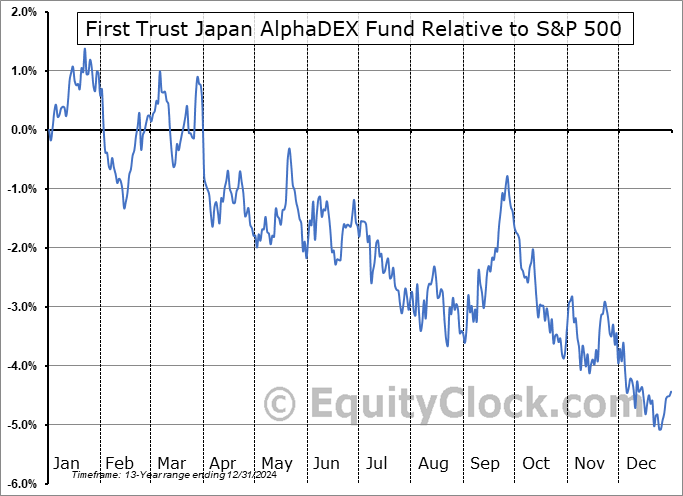 Analysis of the First Trust Japan AlphaDEX Fund (NASD:FJP) seasonal charts above shows that a Buy Date of July 11 and a Sell Date of September 30 has resulted in a geometric average return of 0.35% above the benchmark rate of the S&P 500 Total Return Index over the past 13 years. This seasonal timeframe has shown positive results compared to the benchmark in 9 of those periods. This is a good rate of success and the return strongly outperforms the relative buy-and-hold performance of the stock over the past 13 years by an average of 9.29% per year.