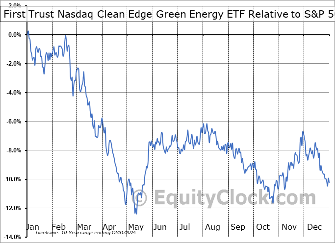 Analysis of the First Trust Nasdaq Clean Edge Green Energy ETF (TSE:QCLN.TO) seasonal charts above shows that a Buy Date of May 10 and a Sell Date of August 1 has resulted in a geometric average return of 4.46% above the benchmark rate of the S&P 500 Total Return Index over the past 10 years. This seasonal timeframe has shown positive results compared to the benchmark in 7 of those periods. This is a good rate of success and the return strongly outperforms the relative buy-and-hold performance of the stock over the past 10 years by an average of 17.46% per year.