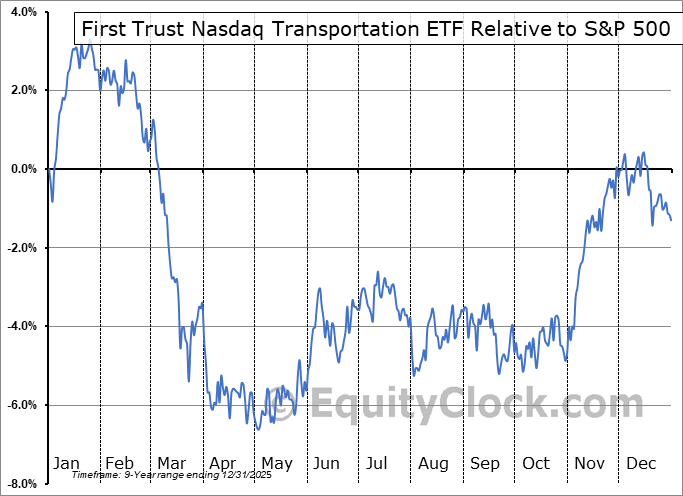 Analysis of the First Trust Nasdaq Transportation ETF (NASD:FTXR) seasonal charts above shows that a Buy Date of October 27 and a Sell Date of January 16 has resulted in a geometric average return of 2.71% above the benchmark rate of the S&P 500 Total Return Index over the past 8 years. This seasonal timeframe has shown positive results compared to the benchmark in 7 of those periods. This is a very good rate of success and the return strongly outperforms the relative buy-and-hold performance of the stock over the past 8 years by an average of 9.46% per year.