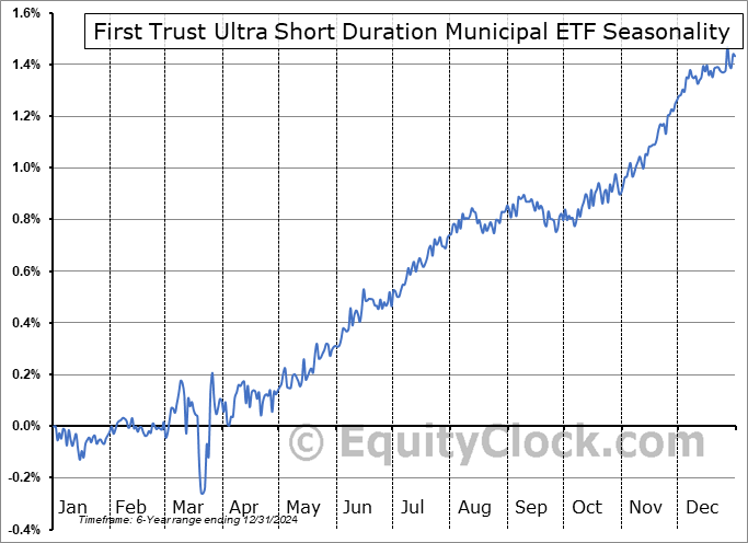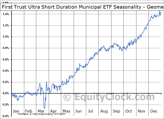 Analysis of the First Trust Ultra Short Duration Municipal ETF (AMEX:FUMB) seasonal charts above shows that a Buy Date of July 14 and a Sell Date of October 3 has resulted in a geometric average return of 1.04% above the benchmark rate of the S&P 500 Total Return Index over the past 6 years. This seasonal timeframe has shown positive results compared to the benchmark in 4 of those periods. This is a good rate of success and the return strongly outperforms the relative buy-and-hold performance of the stock over the past 6 years by an average of 14.75% per year.