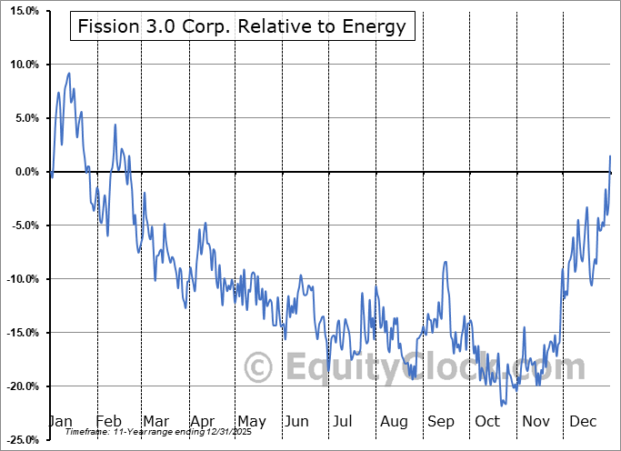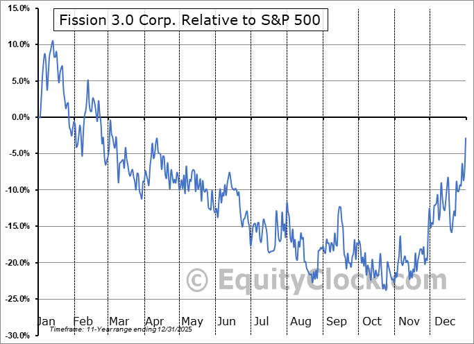 Analysis of the Fission 3.0 Corp. (OTCMKT:FUUFF) seasonal charts above shows that a Buy Date of October 14 and a Sell Date of January 13 has resulted in a geometric average return of 37.88% above the benchmark rate of the S&P 500 Total Return Index over the past 10 years. This seasonal timeframe has shown positive results compared to the benchmark in 10 of those periods. This is an excellent rate of success and the return strongly outperforms the relative buy-and-hold performance of the stock over the past 10 years by an average of 62.82% per year.