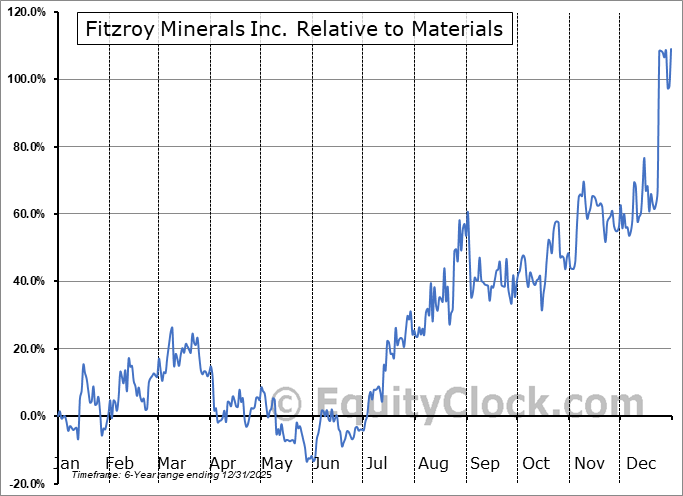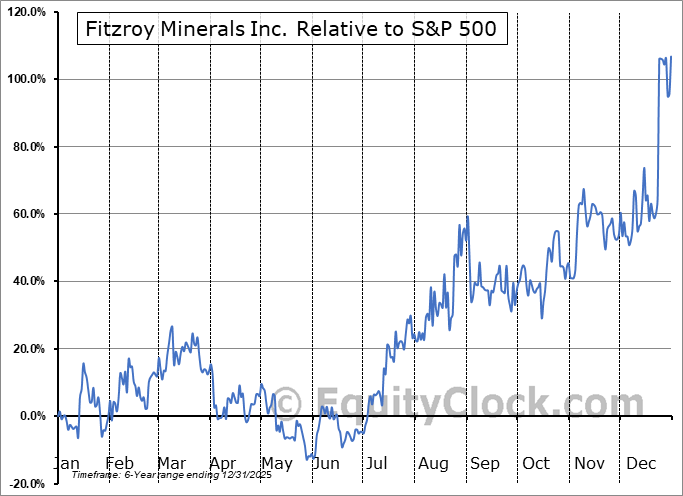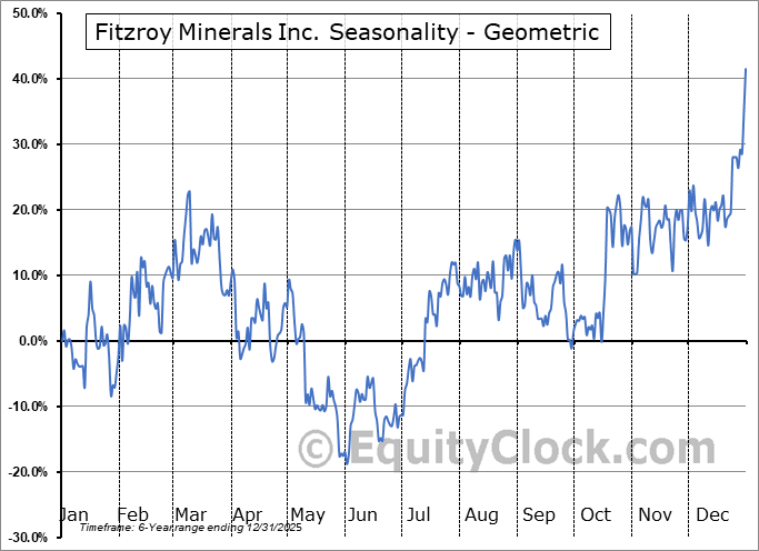 Analysis of the Fitzroy Minerals Inc. (TSXV:FTZ.V) seasonal charts above shows that a Buy Date of November 16 and a Sell Date of March 1 has resulted in a geometric average return of 61.37% above the benchmark rate of the S&P 500 Total Return Index over the past 5 years. This seasonal timeframe has shown positive results compared to the benchmark in 5 of those periods. This is an excellent rate of success and the return strongly outperforms the relative buy-and-hold performance of the stock over the past 5 years by an average of 53.73% per year.