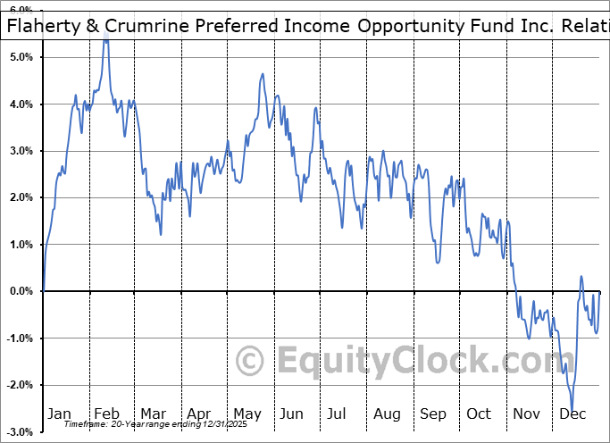 Analysis of the Flaherty & Crumrine Preferred Income Opportunity Fund Inc. (NYSE:PFO) seasonal charts above shows that a Buy Date of December 13 and a Sell Date of March 4 has resulted in a geometric average return of 5.98% above the benchmark rate of the S&P 500 Total Return Index over the past 20 years. This seasonal timeframe has shown positive results compared to the benchmark in 16 of those periods. This is a very good rate of success and the return strongly outperforms the relative buy-and-hold performance of the stock over the past 20 years by an average of 9.53% per year.