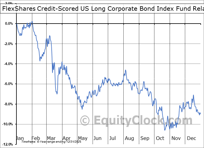 Analysis of the FlexShares Credit-Scored US Long Corporate Bond Index Fund (AMEX:LKOR) seasonal charts above shows that a Buy Date of November 15 and a Sell Date of March 7 has resulted in a geometric average return of 0.63% above the benchmark rate of the S&P 500 Total Return Index over the past 6 years. This seasonal timeframe has shown positive results compared to the benchmark in 4 of those periods. This is a good rate of success and the return strongly outperforms the relative buy-and-hold performance of the stock over the past 6 years by an average of 13.4% per year.