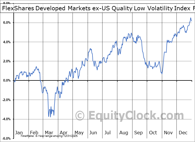 Analysis of the FlexShares Developed Markets ex-US Quality Low Volatility Index Fund (AMEX:QLVD) seasonal charts above shows that a Buy Date of February 15 and a Sell Date of May 12 has resulted in a geometric average return of 1.33% above the benchmark rate of the S&P 500 Total Return Index over the past 5 years. This seasonal timeframe has shown positive results compared to the benchmark in 4 of those periods. This is a very good rate of success and the return strongly outperforms the relative buy-and-hold performance of the stock over the past 5 years by an average of 11.34% per year.