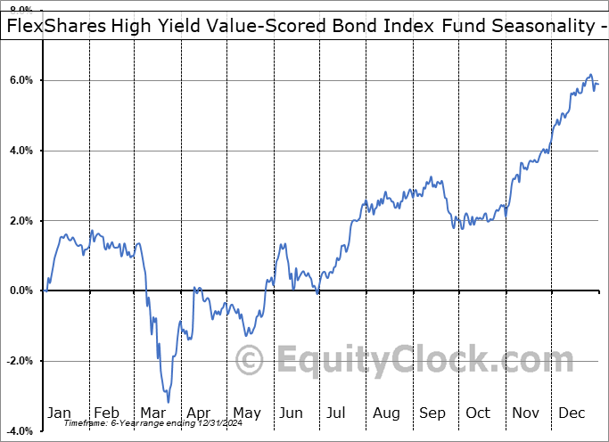 A word of caution: Only 6 years of data is available for shares of HYGV, perhaps insufficient to create a seasonal profile that accurately gauges the seasonal tendencies influencing the investment. Ideally, while 20 years is preferred, at least 10 years of data is required to perform a seasonal analysis that is considered to be reliable for future seasonal periods.