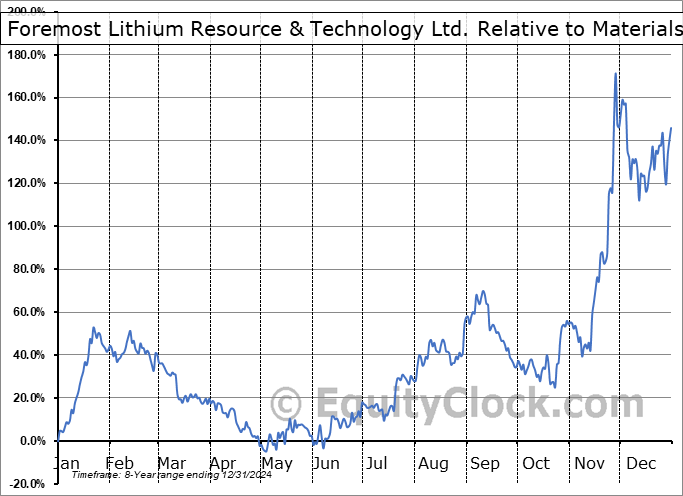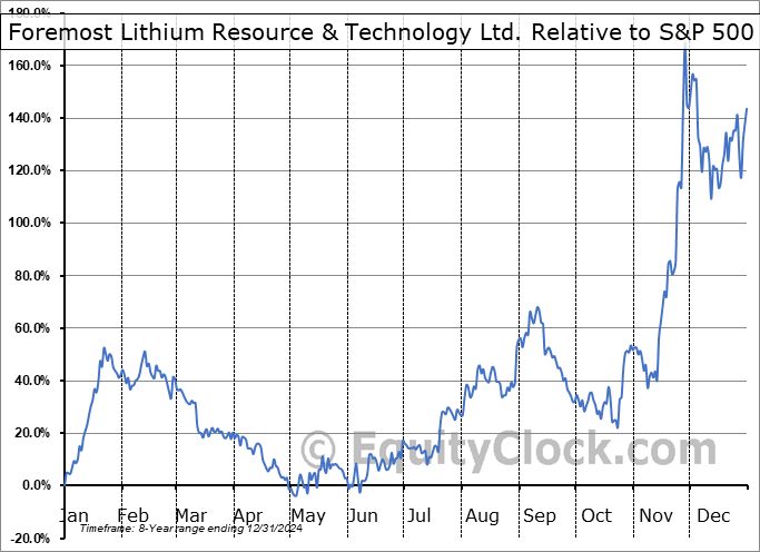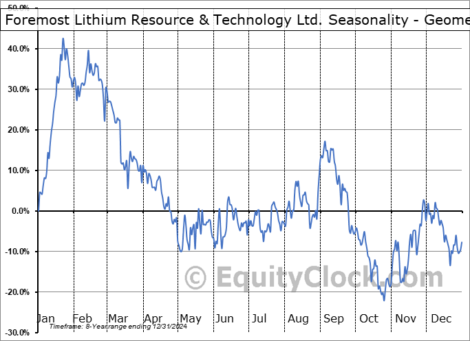 Analysis of the Foremost Lithium Resource & Technology Ltd. (NASD:FMST) seasonal charts above shows that a Buy Date of November 11 and a Sell Date of February 12 has resulted in a geometric average return of 63.97% above the benchmark rate of the S&P 500 Total Return Index over the past 7 years. This seasonal timeframe has shown positive results compared to the benchmark in 7 of those periods. This is an excellent rate of success and the return strongly outperforms the relative buy-and-hold performance of the stock over the past 7 years by an average of 85.91% per year.