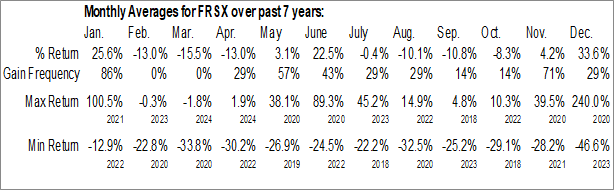 To download FRSX seasonal chart data, please log in or Subscribe.