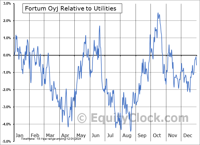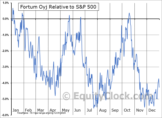 Analysis of the Fortum Oyj (OTCMKT:FOJCY) seasonal charts above shows that a Buy Date of July 22 and a Sell Date of October 15 has resulted in a geometric average return of 5.15% above the benchmark rate of the S&P 500 Total Return Index over the past 15 years. This seasonal timeframe has shown positive results compared to the benchmark in 11 of those periods. This is a good rate of success and the return strongly outperforms the relative buy-and-hold performance of the stock over the past 15 years by an average of 15.46% per year.