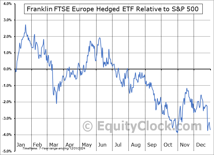 Analysis of the Franklin FTSE Europe Hedged ETF (AMEX:FLEU) seasonal charts above shows that a Buy Date of February 15 and a Sell Date of May 18 has resulted in a geometric average return of 2.99% above the benchmark rate of the S&P 500 Total Return Index over the past 7 years. This seasonal timeframe has shown positive results compared to the benchmark in 6 of those periods. This is a very good rate of success and the return strongly outperforms the relative buy-and-hold performance of the stock over the past 7 years by an average of 10.59% per year.