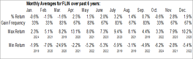 A word of caution: Only 6 years of data is available for shares of FLIN, perhaps insufficient to create a seasonal profile that accurately gauges the seasonal tendencies influencing the investment. Ideally, while 20 years is preferred, at least 10 years of data is required to perform a seasonal analysis that is considered to be reliable for future seasonal periods.