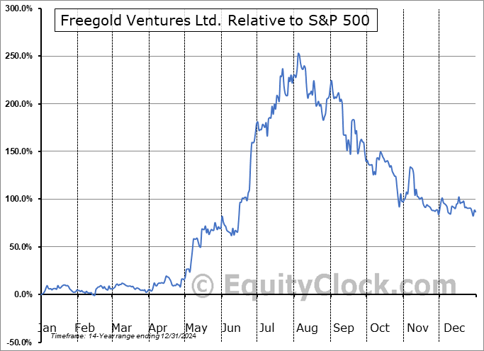 Analysis of the Freegold Ventures Ltd. (OTCMKT:FGOVF) seasonal charts above shows that a Buy Date of February 15 and a Sell Date of May 6 has resulted in a geometric average return of 19.84% above the benchmark rate of the S&P 500 Total Return Index over the past 14 years. This seasonal timeframe has shown positive results compared to the benchmark in 9 of those periods. This is a fair rate of success and the return strongly outperforms the relative buy-and-hold performance of the stock over the past 14 years by an average of 33.44% per year.