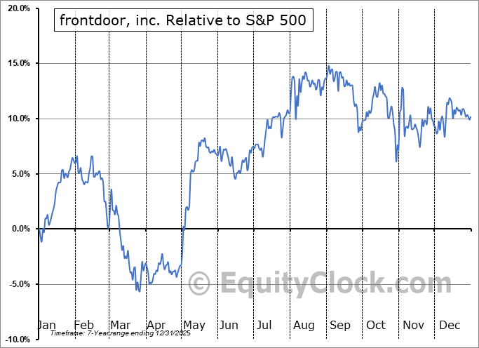 Analysis of the frontdoor, inc. (NASD:FTDR) seasonal charts above shows that a Buy Date of April 6 and a Sell Date of July 17 has resulted in a geometric average return of 7.06% above the benchmark rate of the S&P 500 Total Return Index over the past 6 years. This seasonal timeframe has shown positive results compared to the benchmark in 5 of those periods. This is a very good rate of success and the return strongly outperforms the relative buy-and-hold performance of the stock over the past 6 years by an average of 10.45% per year.