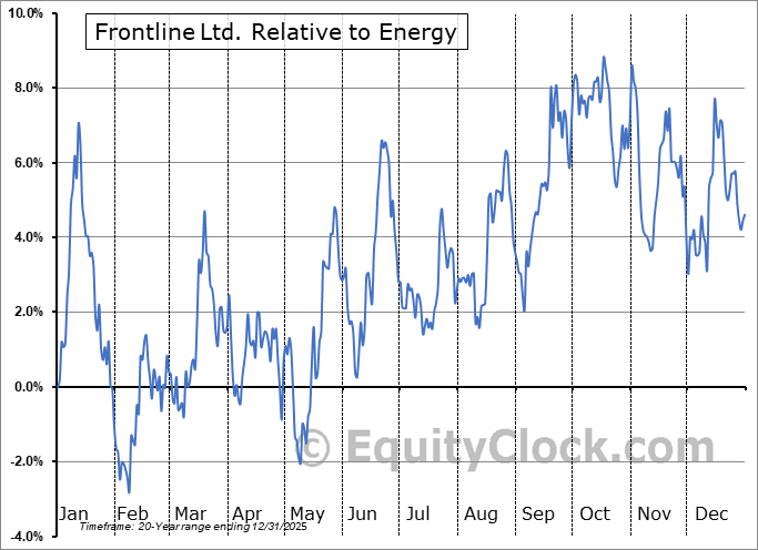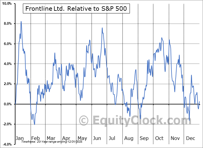 Analysis of the Frontline Ltd. (NYSE:FRO) seasonal charts above shows that a Buy Date of December 9 and a Sell Date of April 21 has resulted in a geometric average return of 2.37% above the benchmark rate of the S&P 500 Total Return Index over the past 20 years. This seasonal timeframe has shown positive results compared to the benchmark in 14 of those periods. This is a good rate of success and the return strongly outperforms the relative buy-and-hold performance of the stock over the past 20 years by an average of 16.54% per year.