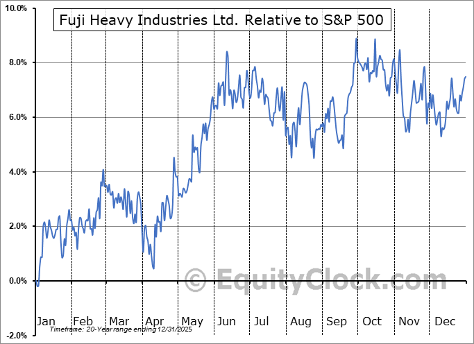 Analysis of the Fuji Heavy Industries Ltd. (OTCMKT:FUJHY) seasonal charts above shows that a Buy Date of November 11 and a Sell Date of January 30 has resulted in a geometric average return of 2.03% above the benchmark rate of the S&P 500 Total Return Index over the past 20 years. This seasonal timeframe has shown positive results compared to the benchmark in 14 of those periods. This is a good rate of success and the return strongly outperforms the relative buy-and-hold performance of the stock over the past 20 years by an average of 2.19% per year.