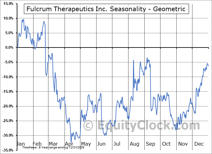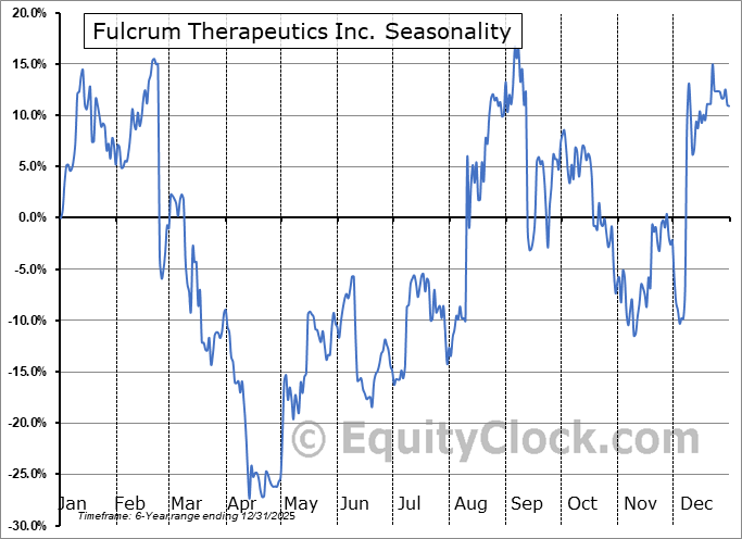 Analysis of the Fulcrum Therapeutics Inc. (NASD:FULC) seasonal charts above shows that a Buy Date of October 21 and a Sell Date of February 21 has resulted in a geometric average return of 58.88% above the benchmark rate of the S&P 500 Total Return Index over the past 5 years. This seasonal timeframe has shown positive results compared to the benchmark in 4 of those periods. This is a very good rate of success and the return strongly outperforms the relative buy-and-hold performance of the stock over the past 5 years by an average of 90.42% per year.