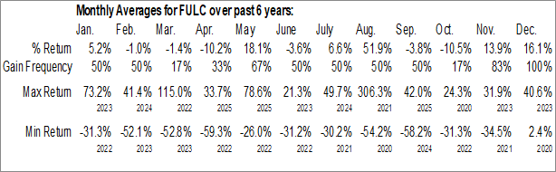 A word of caution: Only 5 years of data is available for shares of FULC, perhaps insufficient to create a seasonal profile that accurately gauges the seasonal tendencies influencing the investment. Ideally, while 20 years is preferred, at least 10 years of data is required to perform a seasonal analysis that is considered to be reliable for future seasonal periods.