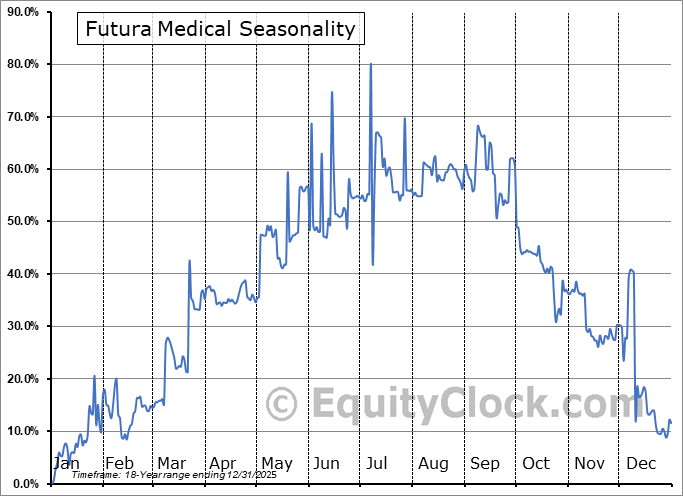 The seasonal timeframe correlates Poorly with the period of seasonal strength for the Healthcare sector, which runs from April 25 to December 4. The seasonal chart for the broad sector is available via the following link: Healthcare Sector Seasonal Chart.