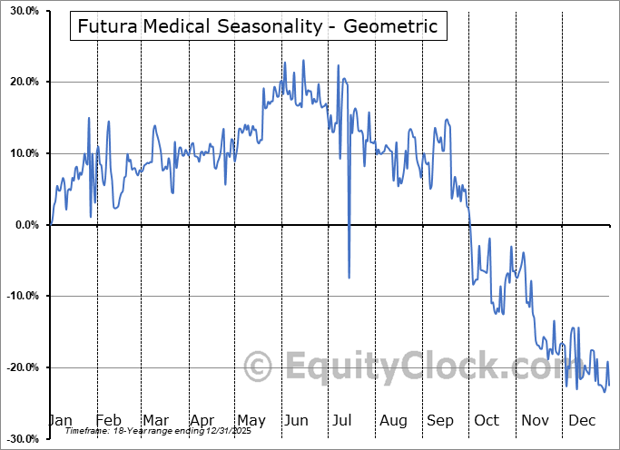 Analysis of the Futura Medical (OTCMKT:FAMDF) seasonal charts above shows that a Buy Date of December 10 and a Sell Date of March 10 has resulted in a geometric average return of 18.13% above the benchmark rate of the S&P 500 Total Return Index over the past 17 years. This seasonal timeframe has shown positive results compared to the benchmark in 13 of those periods. This is a good rate of success and the return strongly outperforms the relative buy-and-hold performance of the stock over the past 17 years by an average of 34.37% per year.