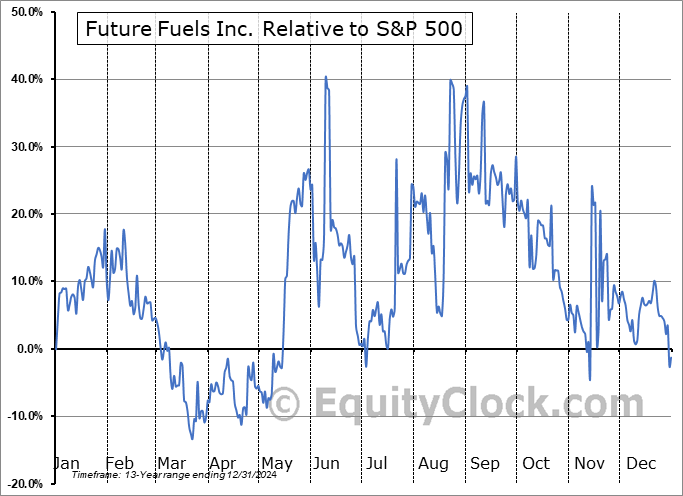 Analysis of the Future Fuels Inc. (TSXV:FTUR.V) seasonal charts above shows that a Buy Date of July 16 and a Sell Date of October 15 has resulted in a geometric average return of 10.73% above the benchmark rate of the S&P 500 Total Return Index over the past 13 years. This seasonal timeframe has shown positive results compared to the benchmark in 9 of those periods. This is a good rate of success and the return strongly outperforms the relative buy-and-hold performance of the stock over the past 13 years by an average of 42.24% per year.