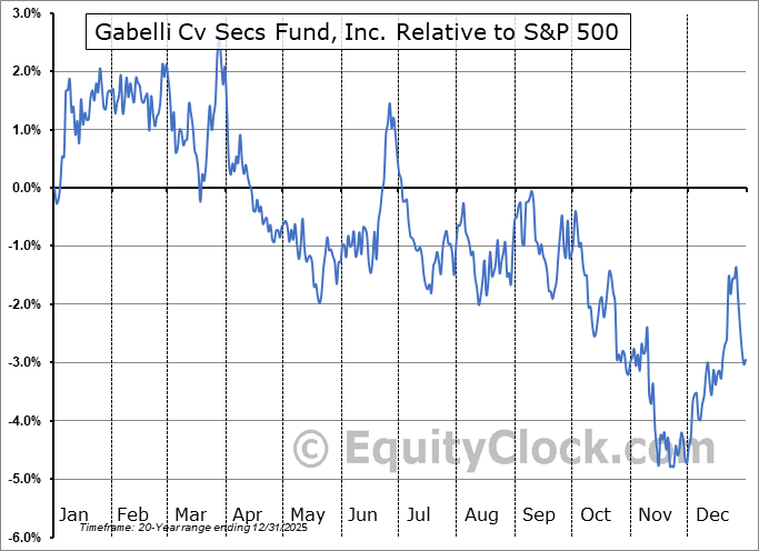 Analysis of the Gabelli Cv Secs Fund, Inc. (NYSE:GCV) seasonal charts above shows that a Buy Date of December 6 and a Sell Date of February 27 has resulted in a geometric average return of 2.39% above the benchmark rate of the S&P 500 Total Return Index over the past 20 years. This seasonal timeframe has shown positive results compared to the benchmark in 16 of those periods. This is a very good rate of success and the return strongly outperforms the relative buy-and-hold performance of the stock over the past 20 years by an average of 7.44% per year.