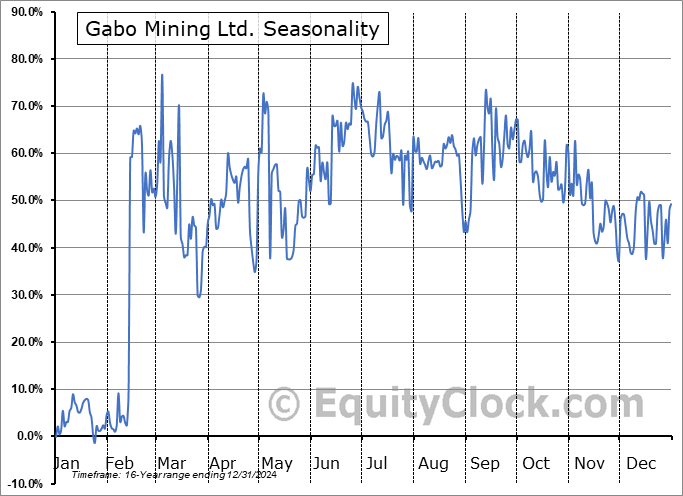 Analysis of the Gabo Mining Ltd. (OTCMKT:MLLOF) seasonal charts above shows that a Buy Date of January 24 and a Sell Date of April 24 has resulted in a geometric average return of 20.06% above the benchmark rate of the S&P 500 Total Return Index over the past 16 years. This seasonal timeframe has shown positive results compared to the benchmark in 12 of those periods. This is a good rate of success and the return strongly outperforms the relative buy-and-hold performance of the stock over the past 16 years by an average of 42.05% per year.