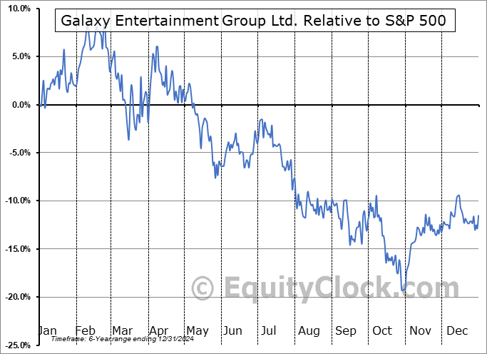 Analysis of the Galaxy Entertainment Group Ltd. (OTCMKT:GXYYY) seasonal charts above shows that a Buy Date of December 3 and a Sell Date of February 21 has resulted in a geometric average return of 6.6% above the benchmark rate of the S&P 500 Total Return Index over the past 6 years. This seasonal timeframe has shown positive results compared to the benchmark in 6 of those periods. This is an excellent rate of success and the return strongly outperforms the relative buy-and-hold performance of the stock over the past 6 years by an average of 26.14% per year.